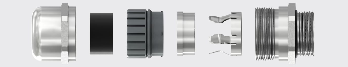 Kabelová průchodka EMC s patentovaným systémem uchycení stíněných kabelů. Snadná a rychlá montáž.